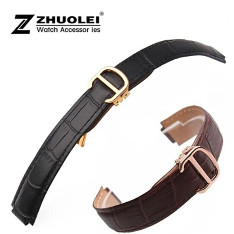 Offer Description of 18*11mm 20*12mm High Quality Genuine Leather Strap for Cartier deployment clasp Watch Band Black& Brown Men Women WATCHBANDS